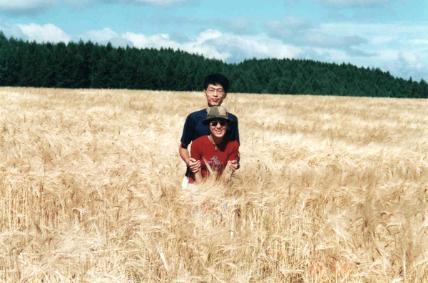 富良野四周是山,盆地內則是整齊的耕地 因此只要一小段距離就能從山坡俯瞰鄉村景色 營地旁的麥田,是生長在亞熱帶的我們不曾見過的 景美人似乎也變美了