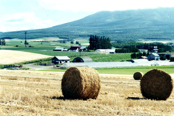 我們首先拜訪營地後方的小丘陵--麓鄉 聽說是日劇"來自北國"的拍攝地 路旁麥田收耕後的草堆景色,果然和旅遊指南上的照片一樣美 一路上時常可以聽到播放著一個男人哼著一段緩慢的旋律 當時不了解為何如此,直到最近看完了來自北國這部日劇 才深深了解這部日劇與這塊地方有著密不可分的意義