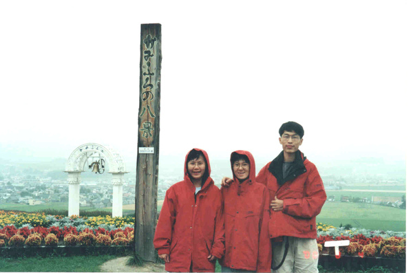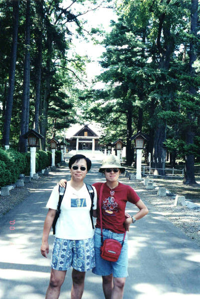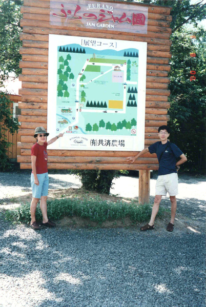 覺得老伯伯的万兩園比較好吃 吃飽之後直接拉車北上到"上富良野" 進入上富良野之後天空開始降雨 我們冒雨在"上富良野八景"之一的--日之出公園散步