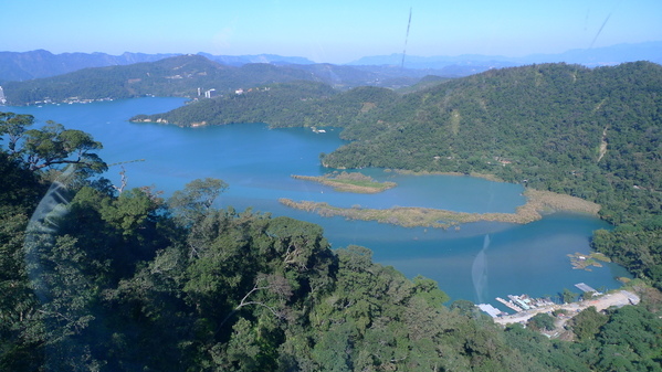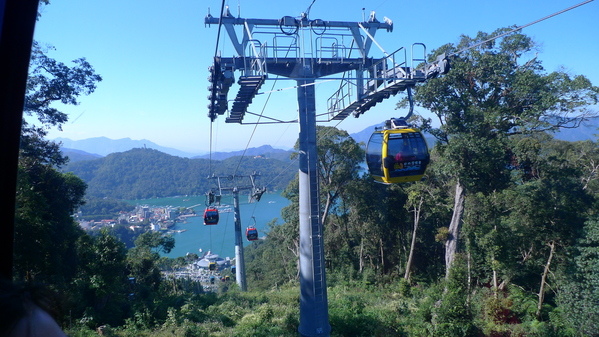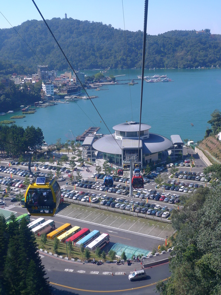 日月潭纜車全長1.87公里,剛開始爬升就可以俯瞰美麗的日月潭美景。