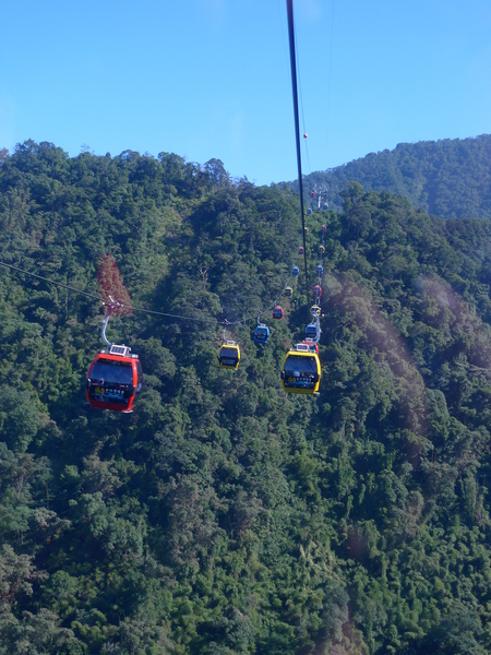 昨天看夕陽的時候,抬頭就是纜車軌道,現在我們變得和它們一樣高了。