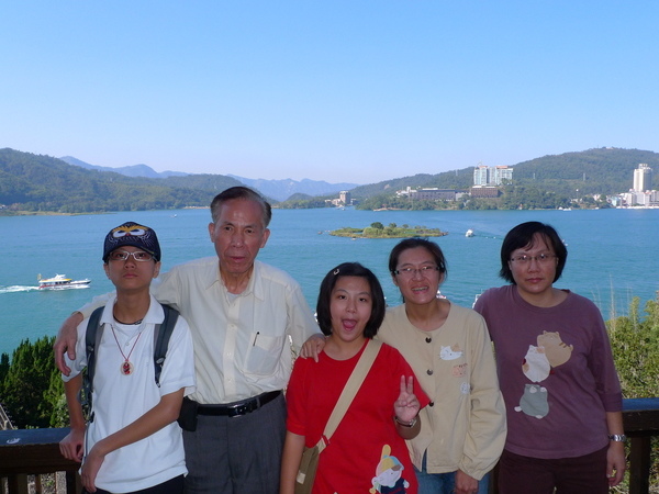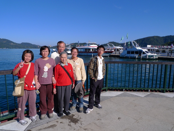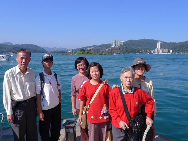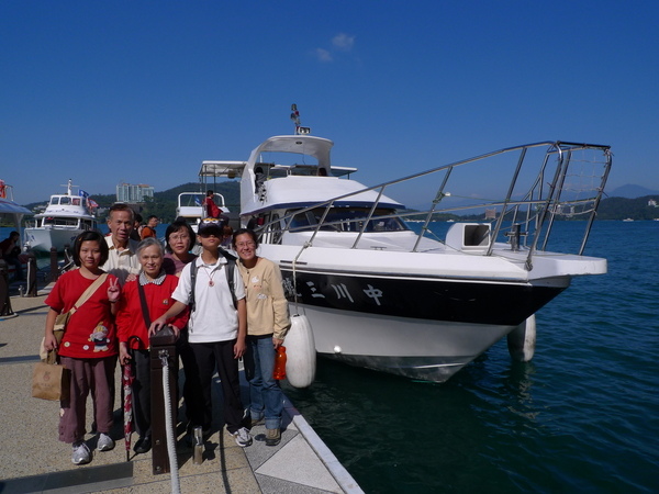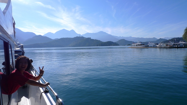 我們同行七人都是第一次從湖心擁抱日月潭湖光山色,好開心。