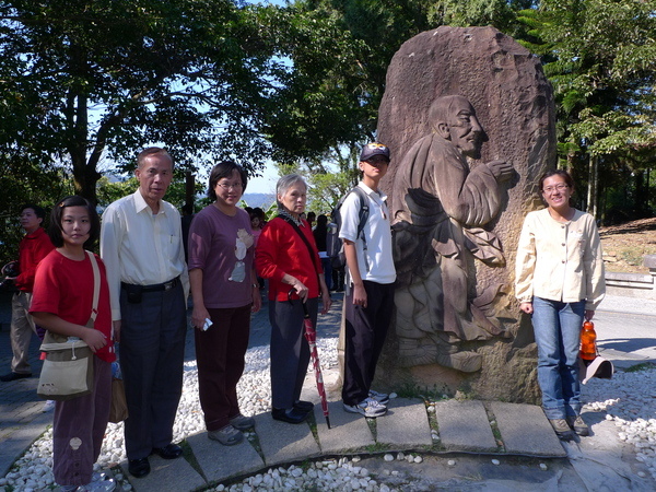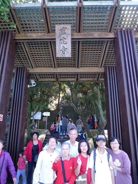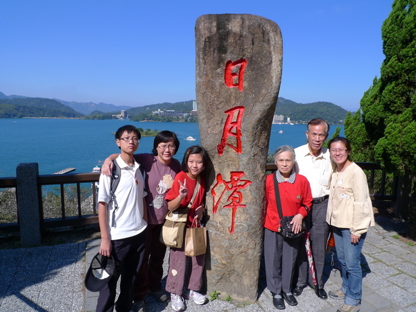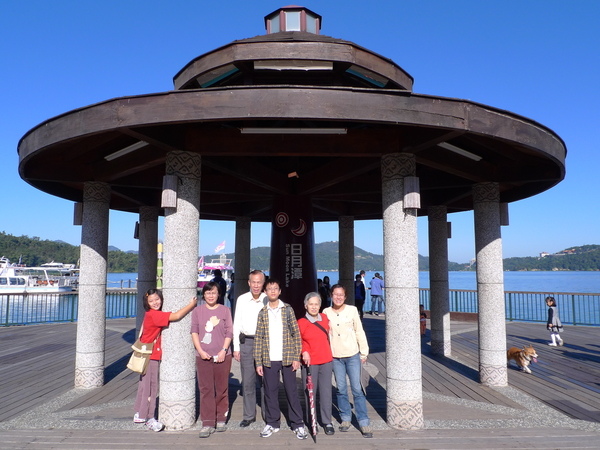 玄光寺門口這塊「日月潭」石碑是個超人氣景點,常常排滿陸客等著拍照,我們在旁邊的庭園享用午餐,發現難得的空檔,趕緊來個團體照。