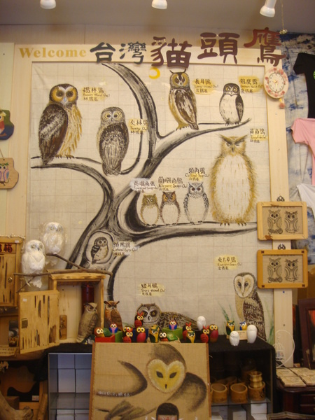 雕刻、畫作、擺飾、T恤、帽子......各式各樣的貓頭鷹作品,我們在這裡逛到忘了時間。