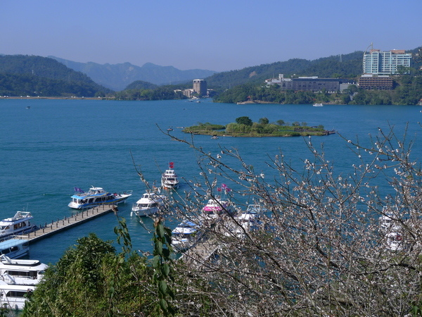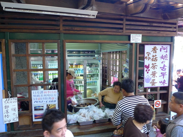 我們從空中纜車上欣賞湛藍的明潭美景之後,走出纜車站,正好遠遠看到11:35的遊艇離岸,我們好整以暇地散步回到商店街,買了各式小吃,準備帶到下一站「玄光寺」好好享用。