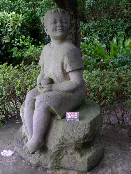 在花園的一隅發現這尊可愛小女孩的石雕作品,兩頰淺淺的酒窩配上無邪的笑臉,手上拿著可口的橘子,一派純潔天真的模樣,真是人見人愛。