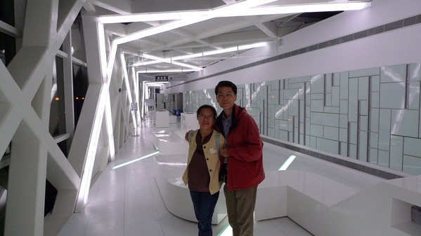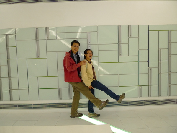 園區一直廣播大佳公園藍色公路的訊息,我們打定主意下次才去大佳園區,一時之間竟然不知到哪兒比較好,於是又走去圓山園區與家人會合,此時他們正在名人館與鄧麗君約會,我們利用等待他們的空檔,岔出今天走過無數次的美術館通道外~~「玻璃長廊」,喜歡這裡,人少,又有設計感。