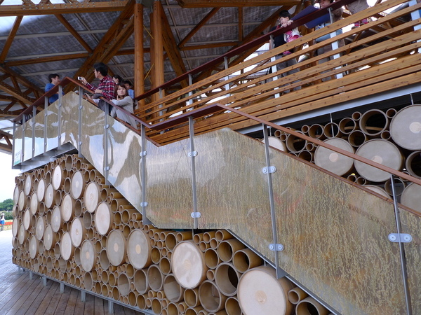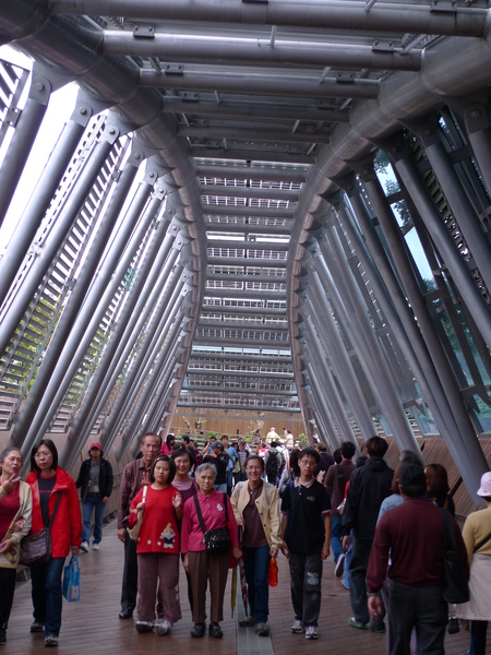 )我們本想登上未來館頂樓的「青青步道」看飛機,繞了一大圈找到入口,又是大排長龍,而且隊伍看不到盡頭,決定還是算了吧!