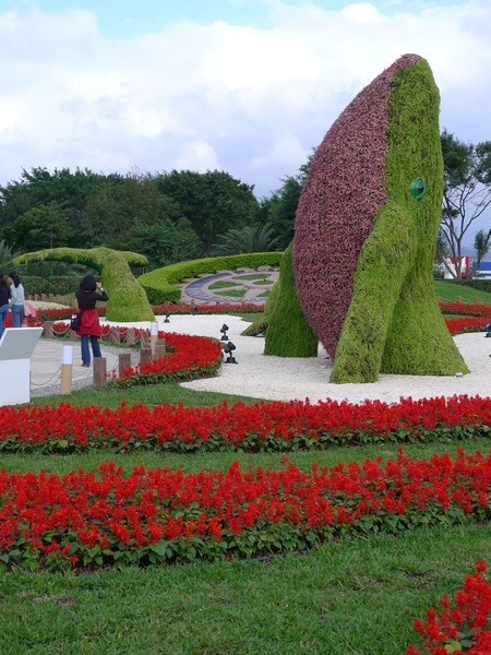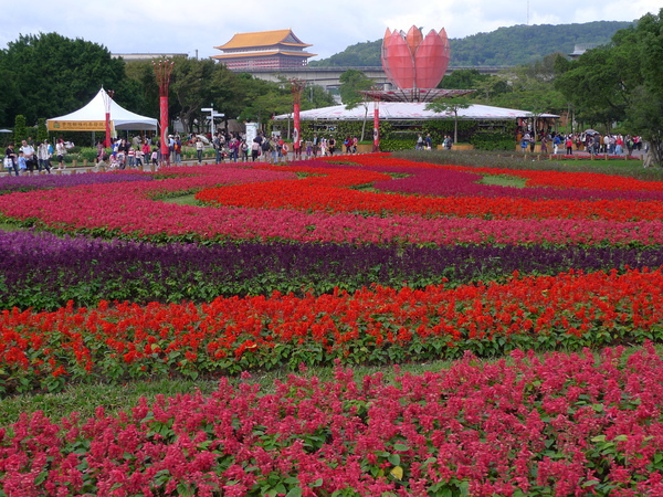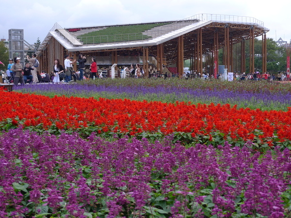 左邊的尖頂白棚就是夢想館的領票處,我覺得這裡比圓山區的地景花海漂亮。