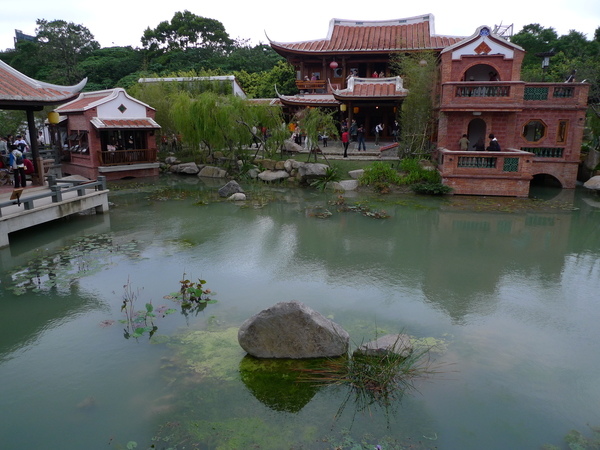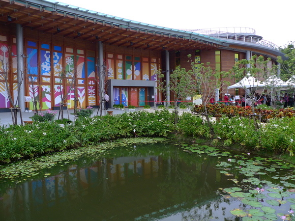 經過夢想館和淨水生態池,告訴老爸這裡才是「夢想館」,現在池邊正在表演「踢踏舞」。