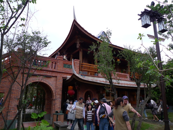 隧道出來就是「迎客坊」,整天都有表演節目,我們走到腿都痠了,於是坐在這裡欣賞4:30「但以理打擊樂團」的原住民表演。
