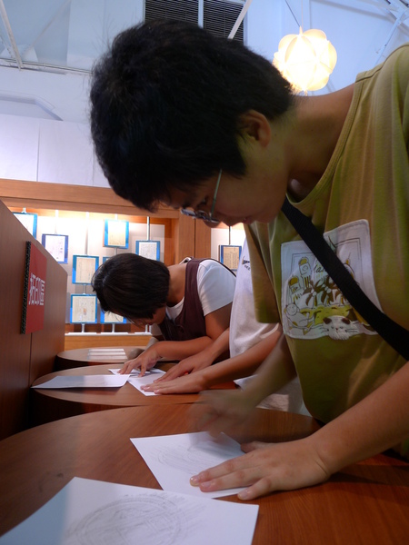 接著,一家從老到小都很認真在拓印展覽logo當作入獄紀念,我們一家子好像不管到哪兒都覺得好玩!