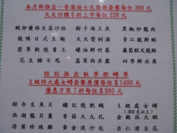 菜單一拿上來,琳瑯滿目,而且價錢不低,正不知如何下手的時候,看到這種每人228的套餐,菜色看來不錯又多樣,於是我們十個人點了九份。
