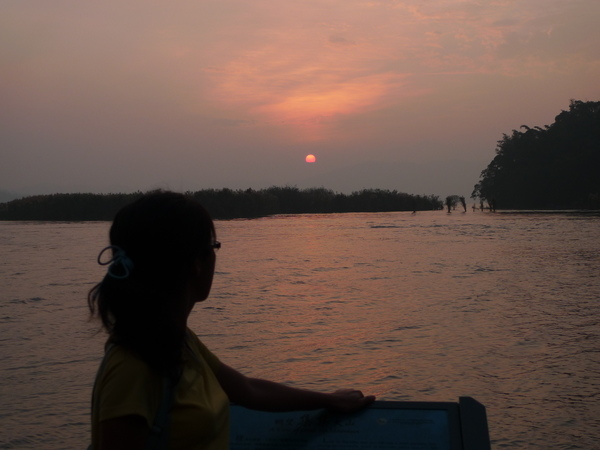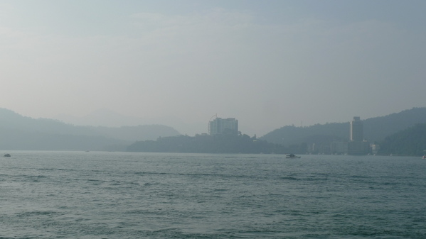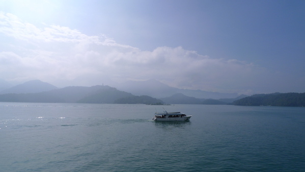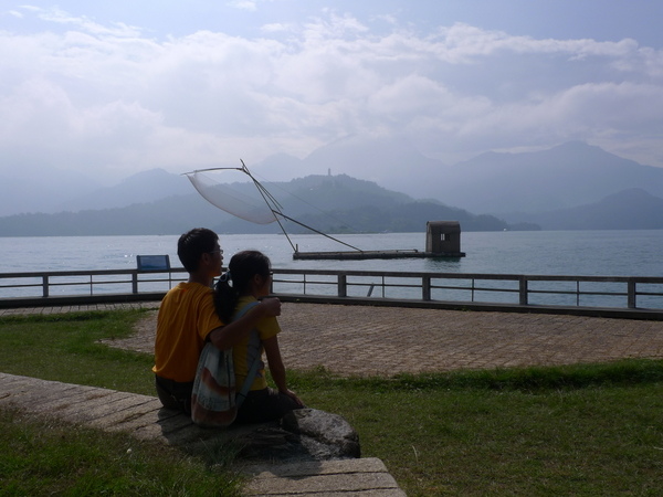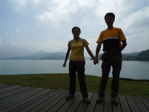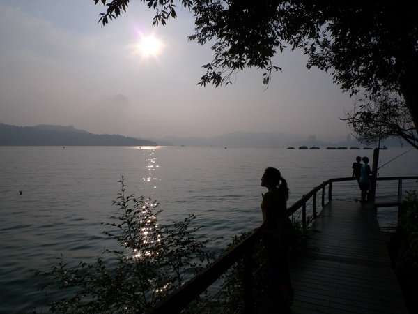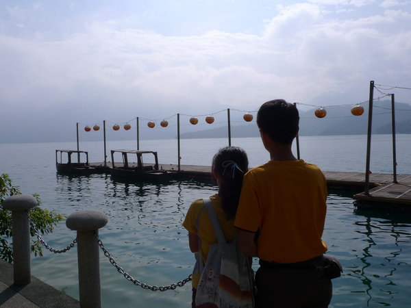我們在這裡享受著太陽準備下山的日月潭美景,好棒啊!