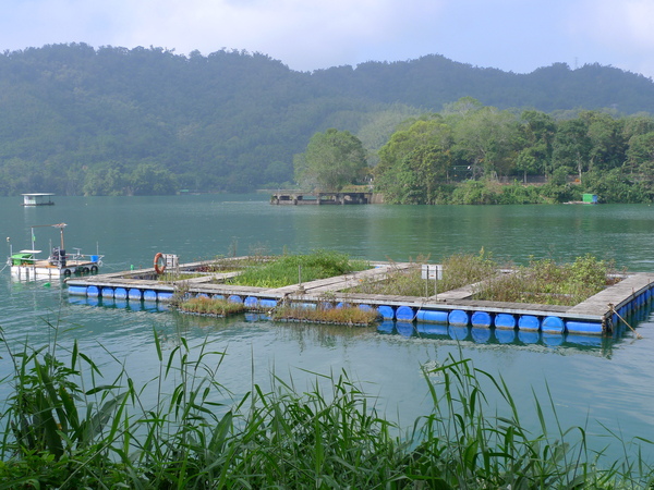 浮嶼是在竹筏上種植水生植物,又稱「浮田」,除了可以降低水波對堤岸沖蝕的力量之外,還可吸引魚蝦繁殖產卵,展現邵族人的生態智慧,也是日月潭的特有景觀。