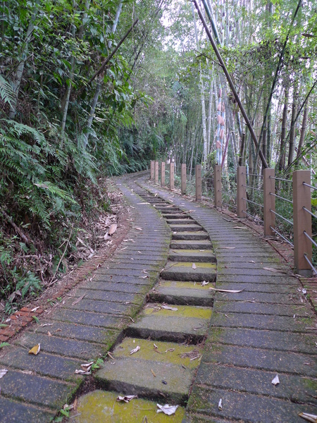 從階梯口走大約十分鐘,遇到一個岔路,我們取右上坡,來到我們走這條步道的目的地~~鳥瞰「頭社盆地」的山頭,林洋港先生的故居就在下方的頭社村內。