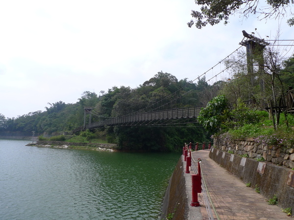 這座山龍坑吊橋全長65公尺,連接水庫兩岸的環湖步道。