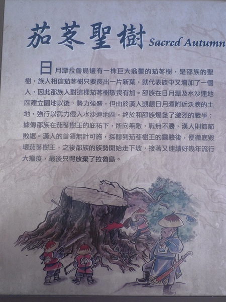「伊達邵」就是石印社,漢人砍了他們的聖樹~~「茄苳樹王」,邵族運勢因此遭到破壞,造成邵族的失敗,最後撤出拉魯島。