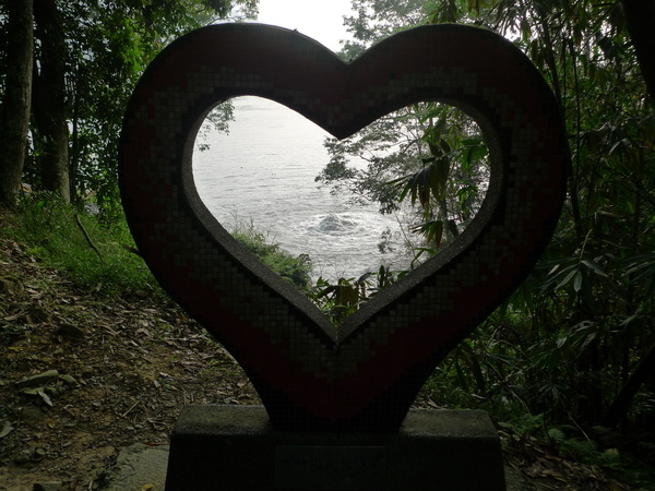 遠遠就聽到滾滾水聲,心型圖案中央是日月潭很重要的景點~~日月湧泉~~日月潭的水就是從這裡進來的。