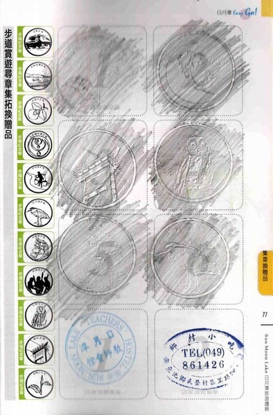 1.步道遊賞:集滿五枚步道拓印章+兩枚店家消費戳章,即可兌換一條「日月潭步道地圖魔術頭巾」或等值禮品。