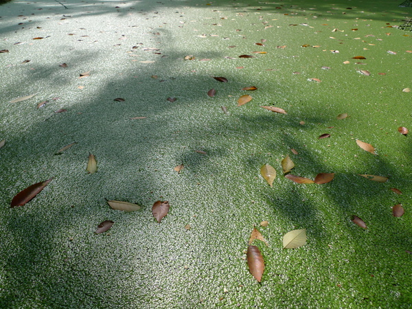 5分鐘之後,經過住家上方漂滿浮萍的蓄水池,像一幅畫。
