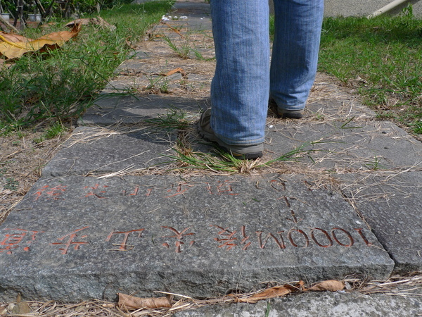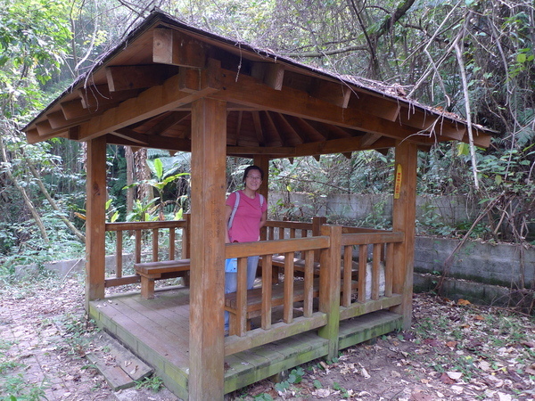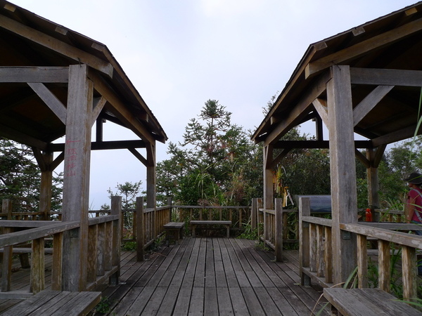 短短100m走了15分鐘,走了45分鐘,終於到達山頂,山頂上有雙涼亭供遊人休息,解說牌旁邊有步道拓印台。