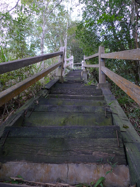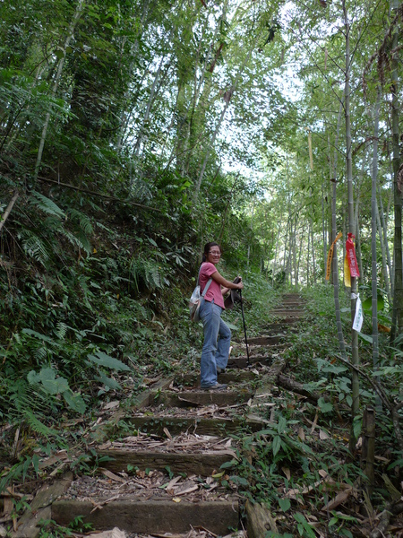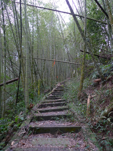 走了十分鐘之後,開始階梯步道,林相也轉變為竹林。
