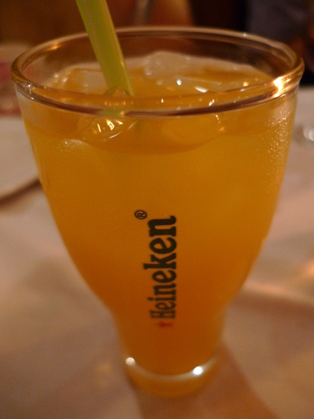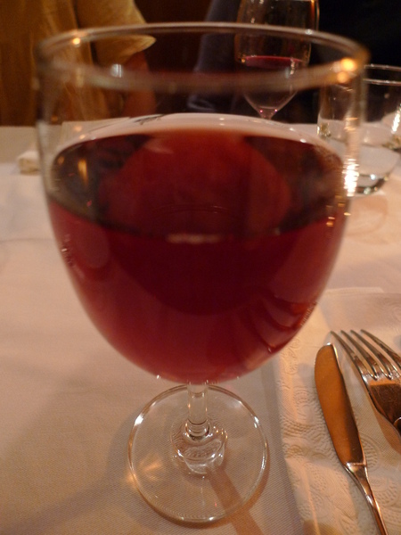 店裡的「紅酒」似乎很不錯,但是我們只點了三杯,其他四位用看起來一樣的「蔓越莓汁」代替,大家一起舉杯謝謝主人招待。