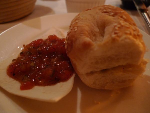 接著上桌的是麵包與薄餅,頗有嚼勁兒,而且越嚼越香,配上莎莎醬和奶油都很好吃。