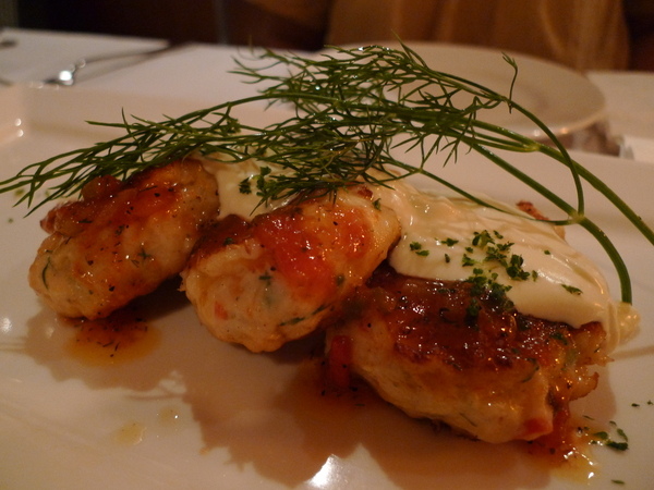 嫩煎蝦餅佐白醬(?)