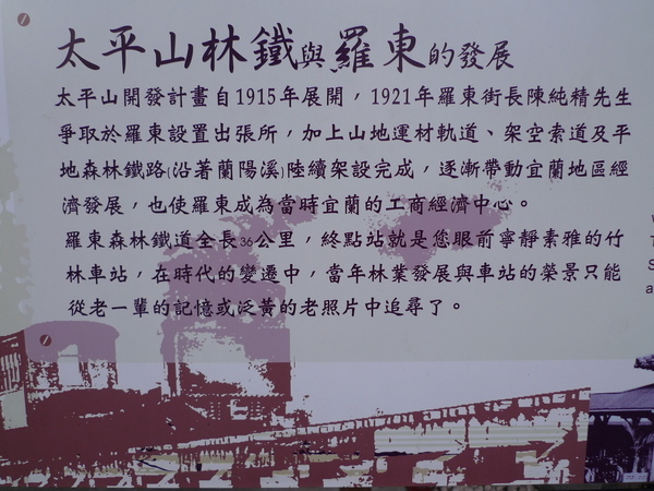 太平山伐木業始於1915年(理番成功了),初期山區以滑道、木馬道集運材,再由蘭陽溪放流至宜蘭員山,1924年土場至羅東竹林之平地森林鐵路通車,山區也改以蹦蹦車及索道運材,當時形成了特殊的運材系統。