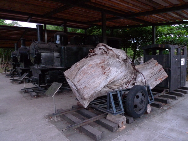 運材火車旁就是「卸木平台」,木材卸下之後,沿著平台斜坡,貯存在「貯木池」中。