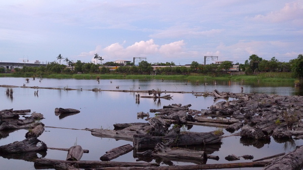 遼闊的「貯木池」,現在仍有很多木頭泡在裡面。