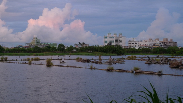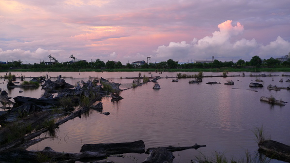 池邊鋪著木頭棧道,我們欣賞著夕陽餘暉,環池散步一圈。