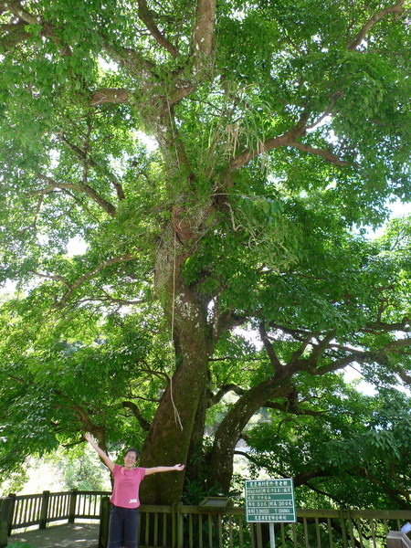 離開六十石山之前,拜訪一下偉大的老茄苳神木,他每天釋放出提供1955人需要的氧氣量,250年來保存了57公噸的二氧化碳,還可以讓我們遮蔭乘涼,幫人類護坡擋土,為地球節能減碳,大家要好好對待身邊珍貴的大樹,不要在上面刻字、剝樹皮!