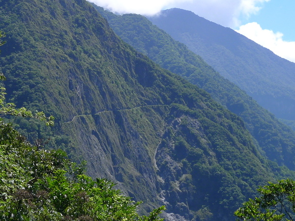 500公尺的斷崖路段,遠看像是從山腰中劃過的一道裂縫。
