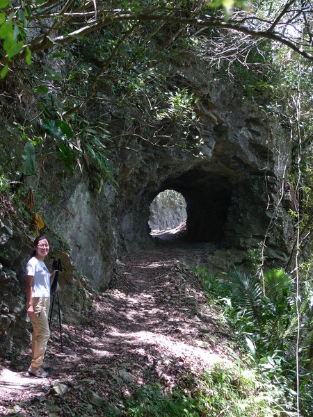 「二號隧道」外側岩石上幾個小小的刻字「大正四年、梅澤柾、 開鑿、記念」,網路上說台灣很多古道都是出自這位「梅澤先生」之手,例如:能高越嶺道、八通關古道。