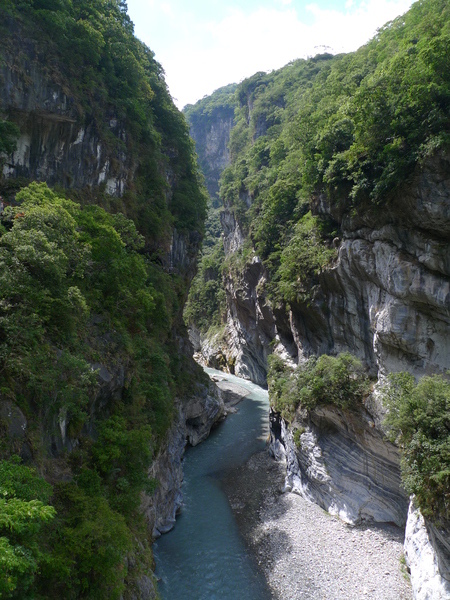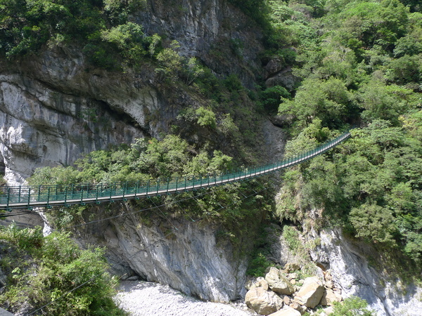 等車的時候,幾個外國女孩就坐在站牌旁陰涼處玩撲克牌,心裡一整個覺得對不起她們,抱著憧憬遠道來台,到了這裡:太陽好大、公車好少、外語不通、遊客超多、吵鬧喧嘩,毫無旅遊品質,想去的地方只能「四天前」從「網路」申請,一點也不方便!政府口口聲聲發展觀光,可是軟硬體都沒有配合,將心比心,我要是這些外國遊客,我也覺得不好玩,回國之後一定會告訴親朋好友:台灣不好玩,不要去~~真想為美麗的太魯閣做一點事,小難過,小沮喪!回來之後才想到應該建議她們去走迷你版的錐麓古道~~「綠水合流步道」,但是已經見不到她們了,遺憾!