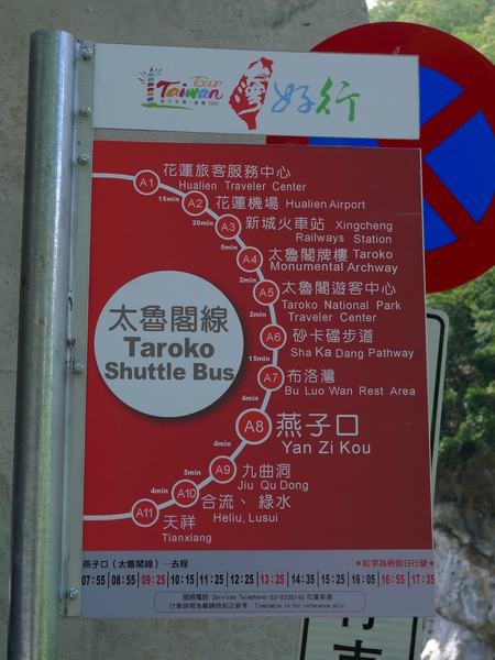 原本打算兩輛車一輛停入口「慈母橋」,另一輛停出口「燕子口」,這樣下山接駁就不成問題了,可是老闆說燕子口會拖吊,不可以停車,搭每小時一班的免費接駁車回慈母橋就好。