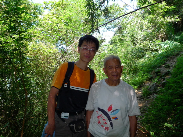 走在隂涼的階梯山徑上,我們遇到一位老先生,笑咪咪地向我們打招呼,我們和他閒聊了一會兒,老人家說他已經80多歳了,平時住在山下,在「立霧山」有另一間房子,昨天有客人,所以上山,今天是星期天,要下山作禮拜,晚上又有客人,還要上山.我們一聽,難道他就是立霧山登山口民宿的主人「黃明岩先生」?!詢問之下,就是本人,我們告訴他:他的民宿在網路上很有名,老人家笑得非常開心,告訴我們他家前面就可以看到太平洋日出,非常漂亮