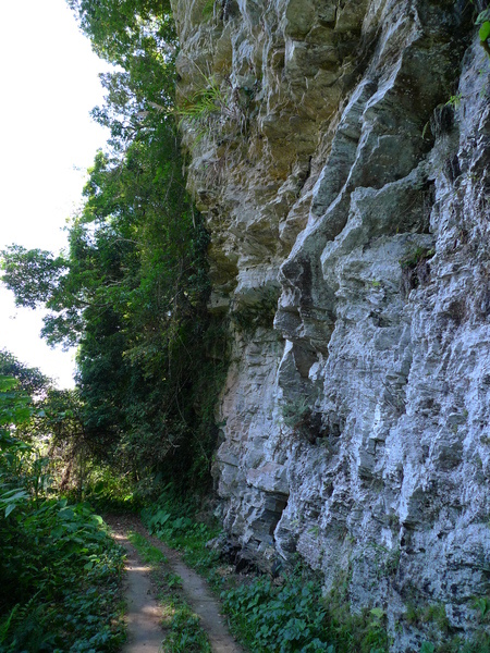 忽然出現高聳石牆,What's this?前面還有路嗎?