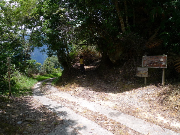 步道出現岔路,左下進入「大禮部落」,我們選擇直行,走上鋪設水泥的「砂卡礑林道」,往立霧山前進。