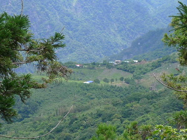 民宿往山下望去,就是「大同部落」,藍色屋頂的民宅就是我們下山時會經過問路的那一家,看起來好遠,走起來也確實不近。