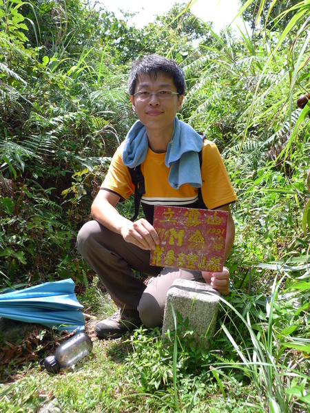山頂一顆「二等三角點」,太陽很大,可是沒有展望,所以我們匆匆下山。
