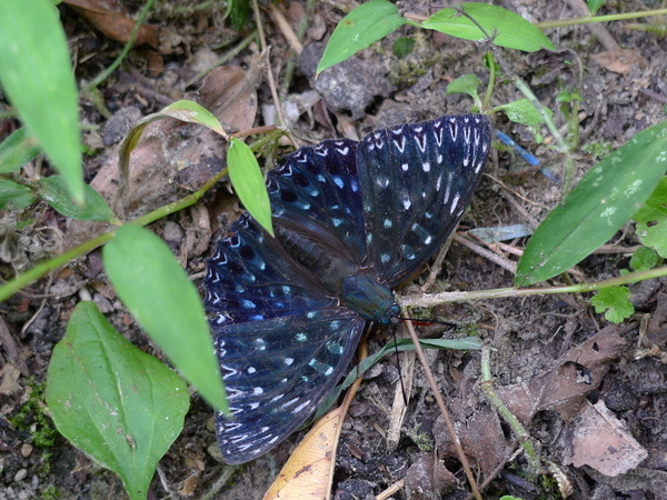 一隻漂亮的蝴蝶正好停在路上等我們。