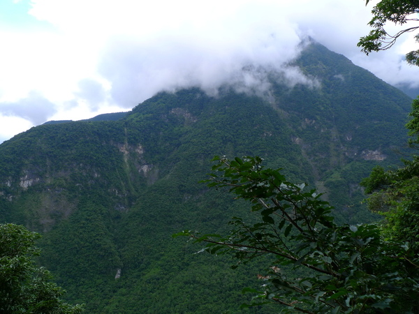 路邊出現一座瞭望平台,稍作休息,眼前雲霧繚繞的高山據說叫做「丹錐山」,又叫「三角錐山」,明天要走的錐麓古道好像就是從這座山的山腰開鑿,希望沒有張冠李戴!