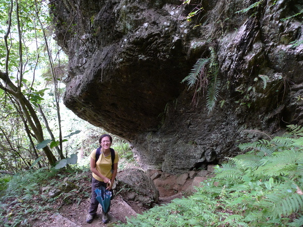雨勢愈來愈大,在大石壁下躲了一會兒雨,可是天色漸漸變暗,繼續陡下趕路吧!