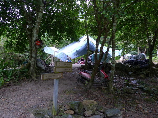 17:50看到藍色帆布蓬子,終於到了「三間屋」~~「同禮古道」和「砂卡礑步道」交界處,摸黑走山路的警報解除了,鬆了一口氣!