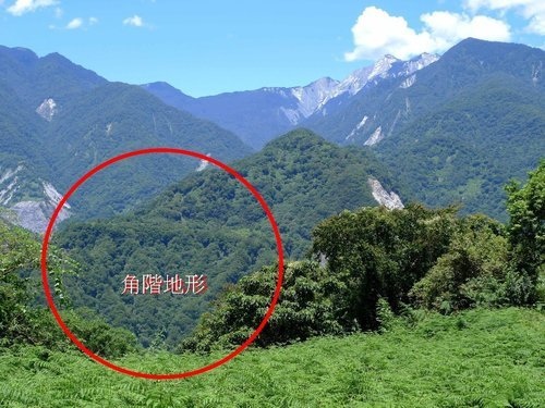 這片「角階」與河谷的落差高達500公尺以上,表示這是一塊古老的角階,訴說著「溪水強大的侵蝕力量」與「地殼快速隆起」的故事。