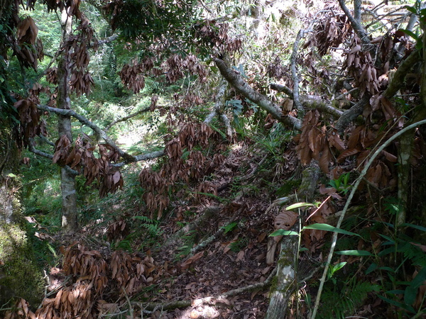 腳下不時又有倒竹、野豬洞出現,光是注意腳下的陷阱已經應接不暇了,哪裡有空抬頭欣賞四周風景?